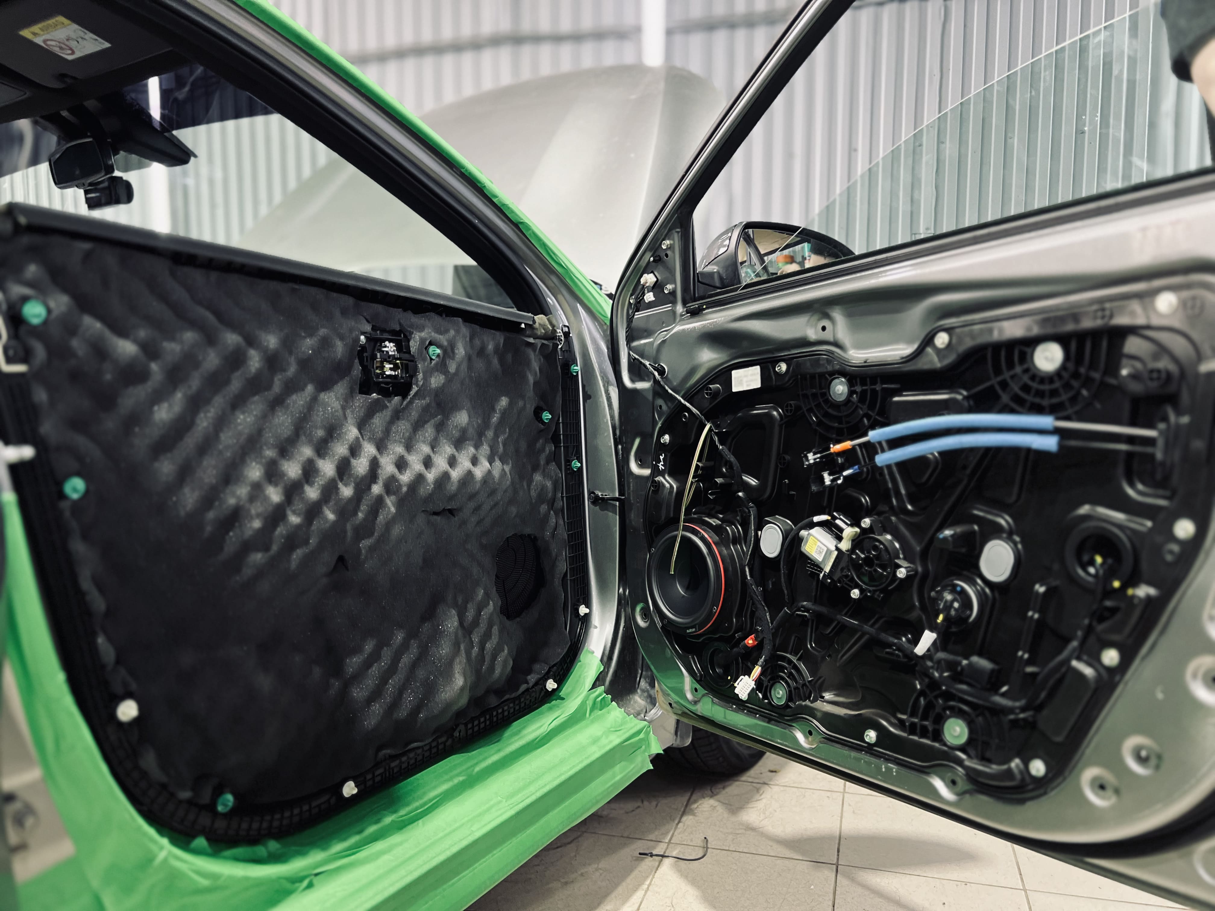 Двери и дверь багажника – важные элементы шумоизоляции, через которые проникают звуки улицы и ветра. Мы обработали их в несколько слоев, чтобы обеспечить тишину и улучшить акустику.