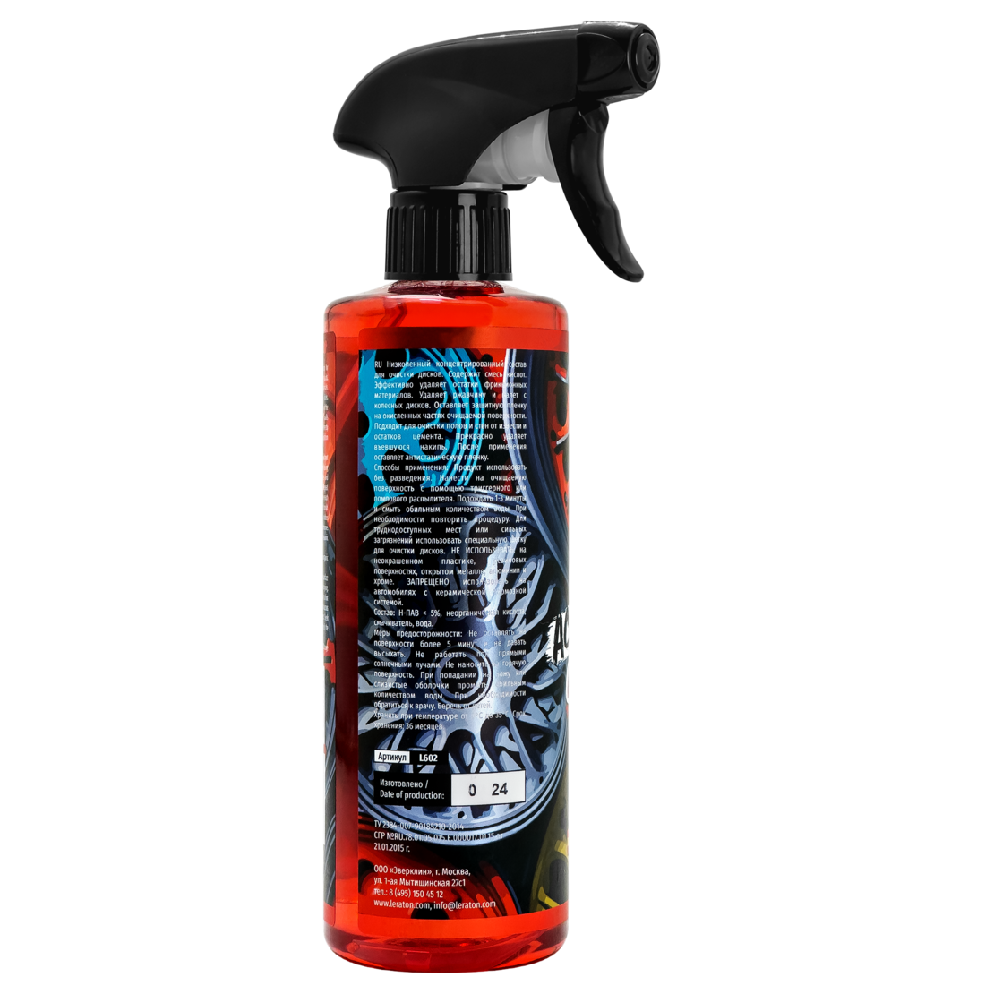 Концентрированное средство для удаления грязи с дисков. Отличается низким уровнем пены, помогает избавиться от излишков фрикционных материалов. Эффективно удаляет налет и коррозионные поражения на поверхности дисков. Формирует тонкий защитный слой на окисленных поверхностях. Может применяться для удаления стен, полов от цементных отложений. Нельзя наносить на неокрашиваемый пластик, открытые металлические детали, резиновые изделия, алюминиевые и хромовые элементы.